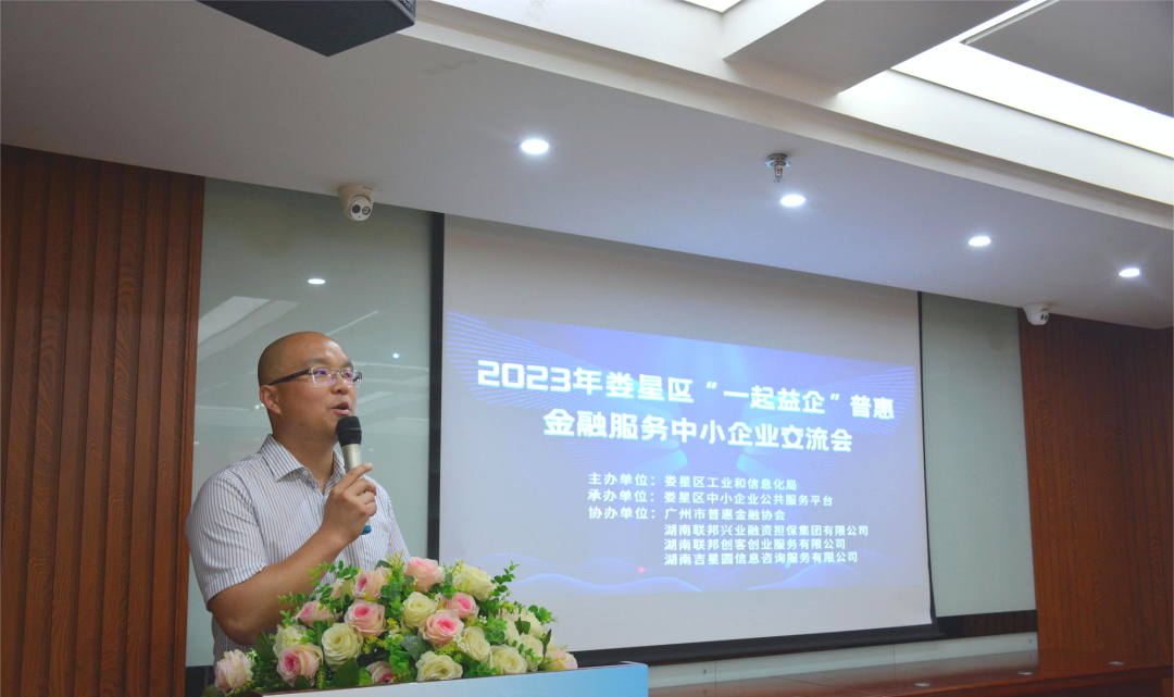為深入貫徹落實工信部“一起益企”中小企業(yè)服務(wù)行動,進(jìn)一步加強中小微企業(yè)金融基礎(chǔ)知識的了解,提升對金融產(chǎn)品和服務(wù)的認(rèn)知能力,著力促進(jìn)制造業(yè)和中小微企業(yè)融資,助力企業(yè)高質(zhì)量發(fā)展,4月21日,由婁星區(qū)工業(yè)和信息化局主辦,婁星區(qū)中小企業(yè)公共服務(wù)平臺承辦,廣州市普惠金融協(xié)會、湖南聯(lián)邦興業(yè)融資擔(dān)保集團(tuán)有限公司等服務(wù)機構(gòu)協(xié)辦的2023年婁星區(qū)“一起益企”普惠金融服務(wù)中小企業(yè)交流會在吉星金融大廈六樓舉行。