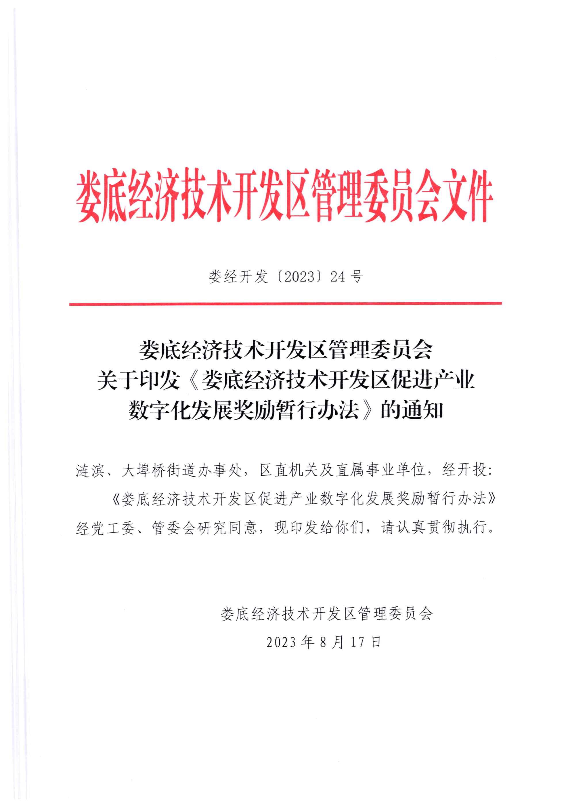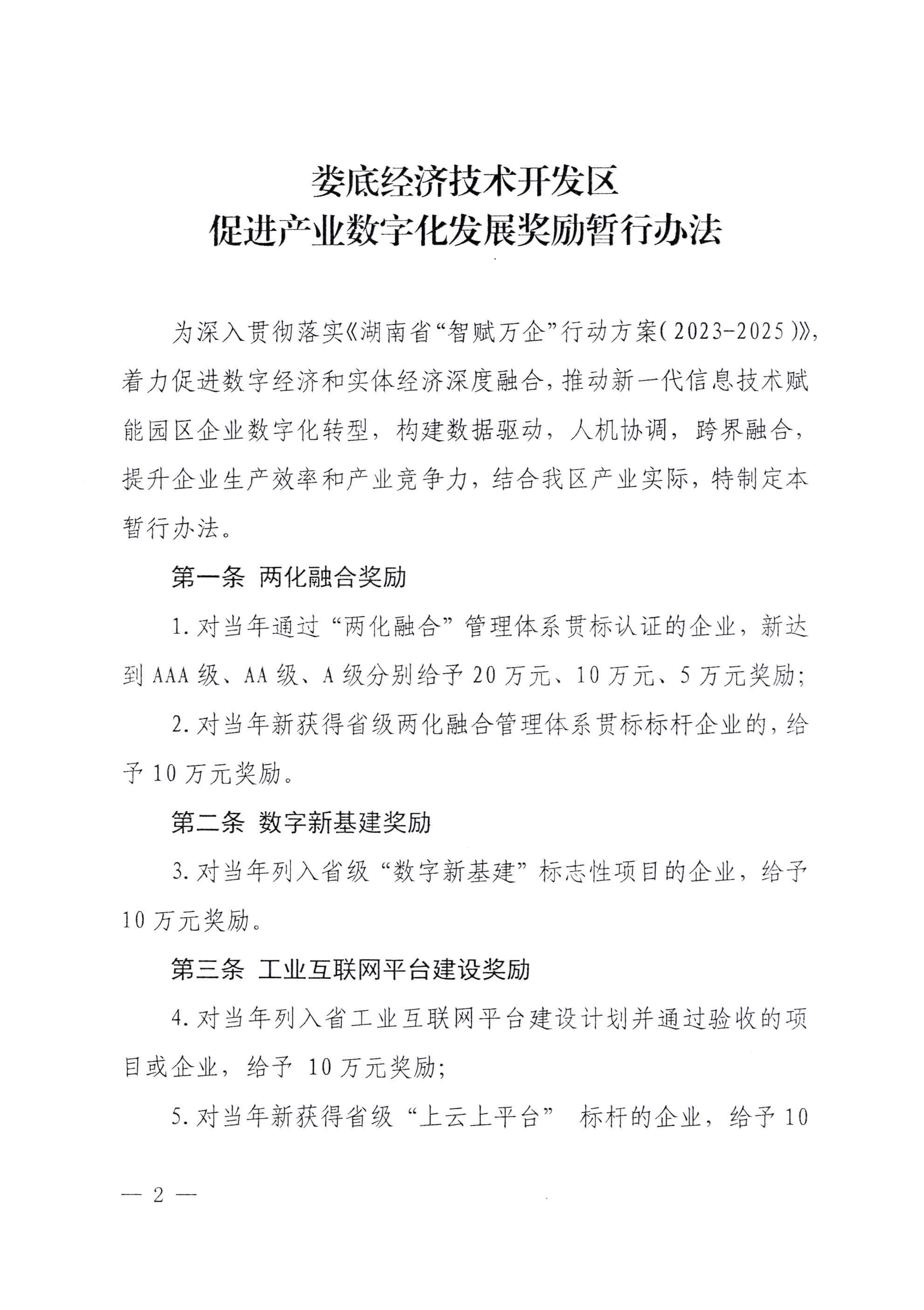 婁底經(jīng)濟(jì)技術(shù)開發(fā)區(qū)管理委員會(huì) 關(guān)于印發(fā)《婁底經(jīng)濟(jì)技術(shù)開發(fā)區(qū)促進(jìn)產(chǎn)業(yè) 數(shù)字化發(fā)展獎(jiǎng)勵(lì)暫行辦法》的通知