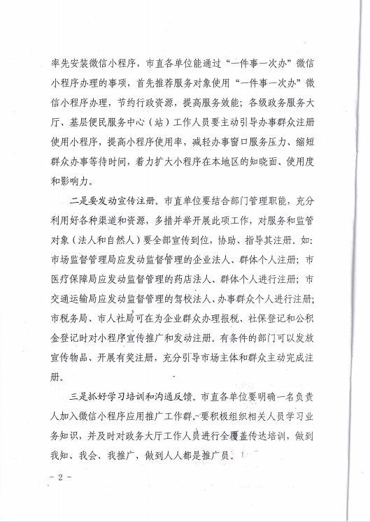 關于進一步推進“一件事一次辦”微信小程序注冊宣傳推廣工作的通知